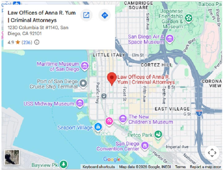 Being charged with a crime in California places your future in immediate jeopardy. In San Diego, a conviction can affect far more than court penalties, impacting your career, family, reputation, and freedom. This is not a time to wait.At the Law Offices of Anna R. Yum, we provide experienced defence when it matters most. Our firm is led by Anna R. Yum, a former prosecutor and trusted San Diego Criminal Defense Attorney. We understand the prosecution’s strategies and fight aggressively on your behalf.